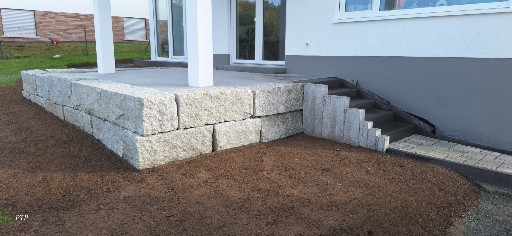 Wir erstellen für Sie Geländeabfangungen, Mauern und Treppen aus Natursteinen und Betonfertigteilen.